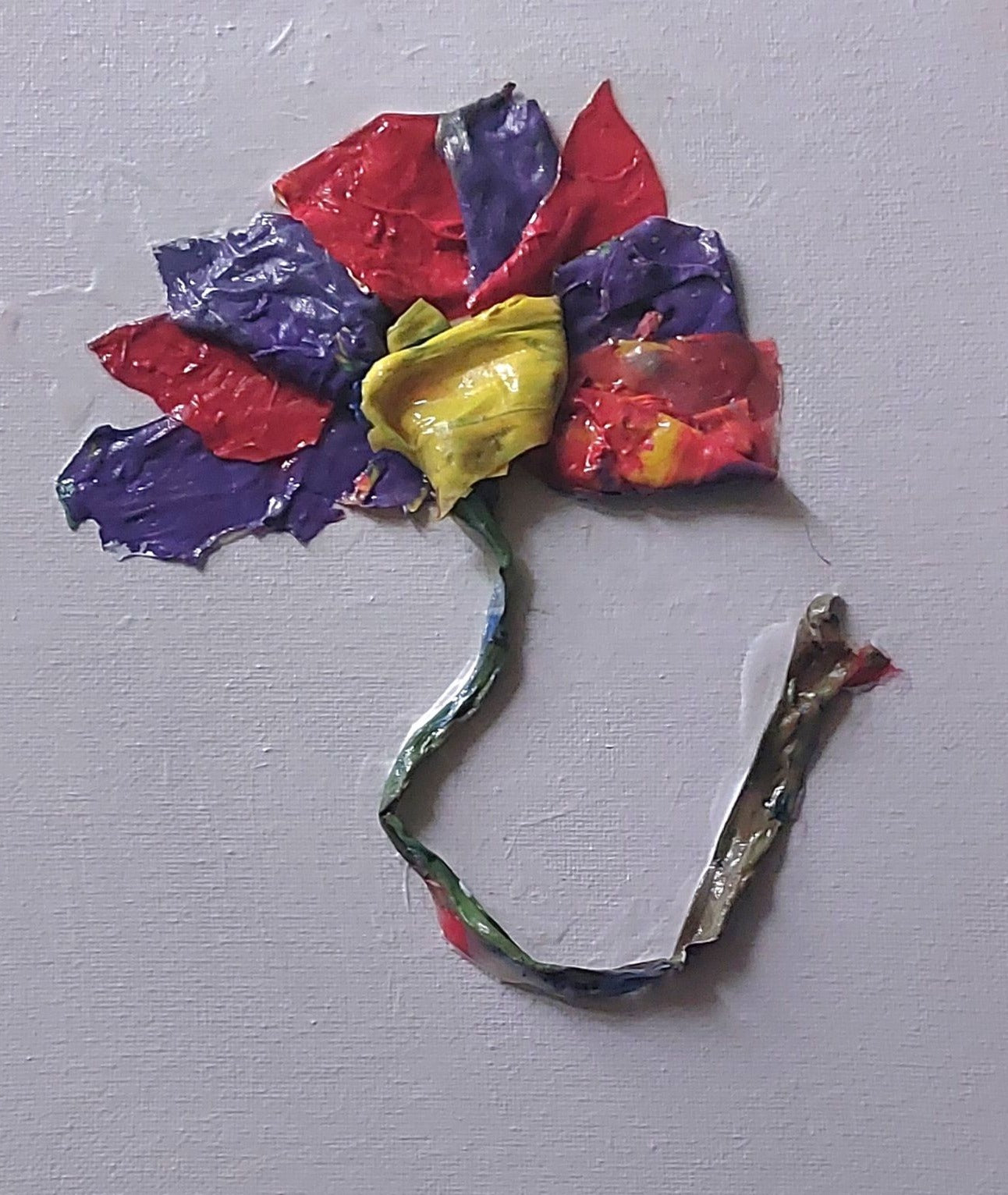 Description: A single bloom rises from the earth—wild, untamed, and full of life. Cosmos Bloom captures the raw beauty of nature through bold strokes, layered texture, and vibrant hues that pulse with energy.The twisted, expressive stem anchors the flower to the ground, suggesting strength, vulnerability, and the messy beauty of growth.